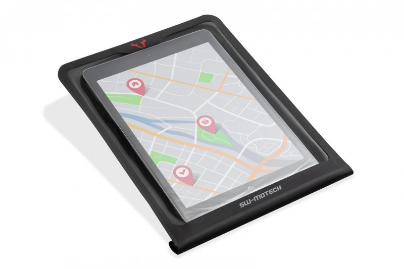 The waterproof Tablet-Drybag is the right transport solution for maps and tablets on PRO tank bags: with two retention arms, the Tablet-Drybag is inserted into the MOLLE system and additionally secured by an elastic band on the tank bag. You can adjust the position of the Tablet-Drybag on the MOLLE attachment to suit your needs. You can find detailed information on how to attach the Tablet -Drybag to the MOLLE attachment in the operating instructions. The tablet itself is waterproof in the plastic case with a large clear PVC window. With the Tablet-Drybag, almost all standard-sized devices can be mounted on the motorcycle for safe navigation. Alternatively, the Tablet-Drybag can also be used for conventional road maps.