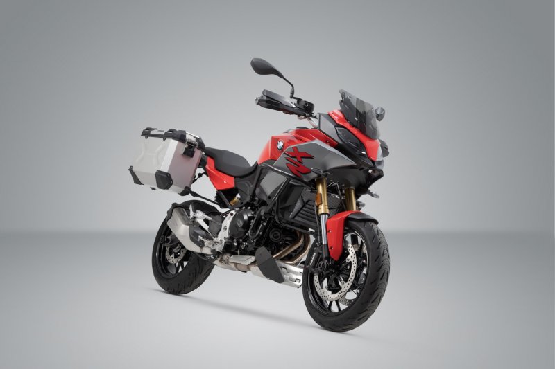 TRAX ADV Aluminum case systemTEST WINNER in the magazine MOTORRAD issue 05/2020. Test result: VERY GOOD Durable TRAX ADV aluminum cases feel at home on any stretch of road: embossed patterns add stability to the 1.5 millimeter-thick, welded aluminum wall material. A completely removable lid with carrying handles made of anodized aluminum and quick release fasteners makes loading and unloading of motorcycle luggage easier; the beveled side edge provides high ground clearance when cornering. With this complete solution, you have all the components you need to travel with TRAX: two waterproof TRAX ADV side cases, two detachable SW-MOTECH side carriers, adapter kit, lock set, lid limiter and anti-theft protection at an attractive price. The bike-specific carrier and the size of the cases are perfectly matched to the rear shape and exhaust system of the motorcycle. A motorcycle case without compromise: the development of the TRAX ADV focused on stability and impermeability against dust and water as well as simple handling. Whether on an off-road adventure, road trip or short haul, the premium aluminum case with a wall thickness of 1.5 millimeters will come out on top in any challenge. PRO Side carrier- Extremely durable due to its optimized shape and 2.5 mm thick steel