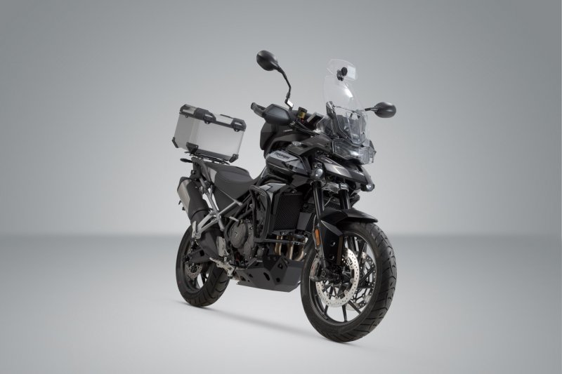 The TRAX ADV top case system consists of a robust silver top case and matching ADVENTURE-RACK for the Triumph Tiger 900/ GT/ Rally/ Pro (19-).